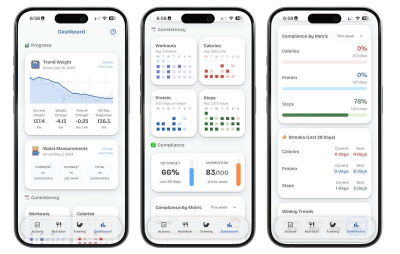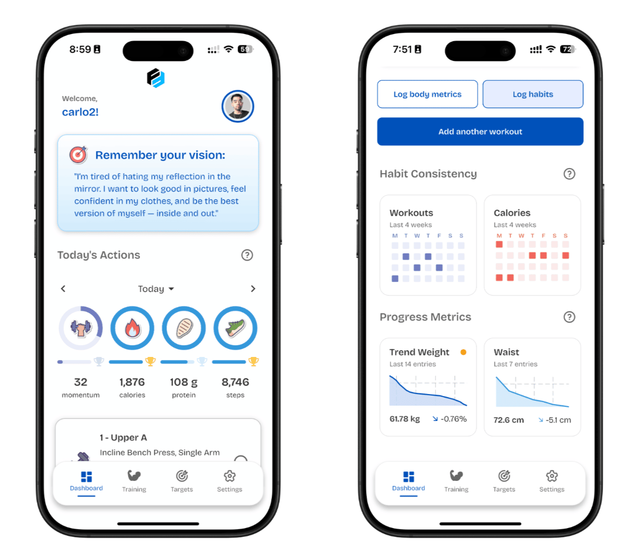 And having logged on the app almost every single day, I can honestly say that separating these two screens — your actions today, and your progress over time — makes that SO MUCH EASIER to do.